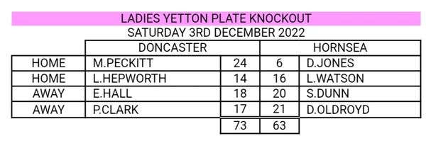 The Ladies County league consists of 1 inter club division. Clubs represented currently are Leeds, Selby, York, North Cave, Hornsea, New Earswick, Harrogate, Thornaby and Doncaster.